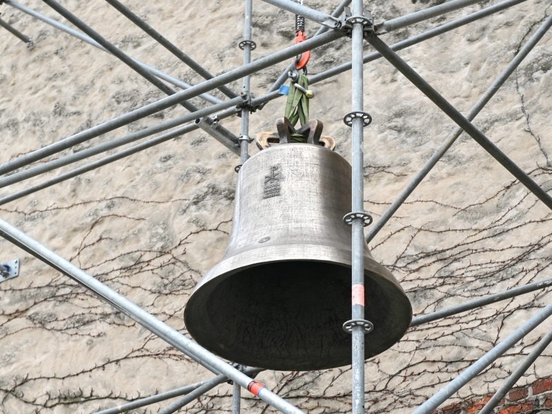 Drei Glocken wurden heute (14. April 2026) auf den Turm der Hauptkirche St. Marien emporgezogen. Dabei handelte es sich um eine restaurierte (Hilliger-)Glocke, die neugegossene Christusglocke und die ebenfalls neugegossene Friedensglocke.