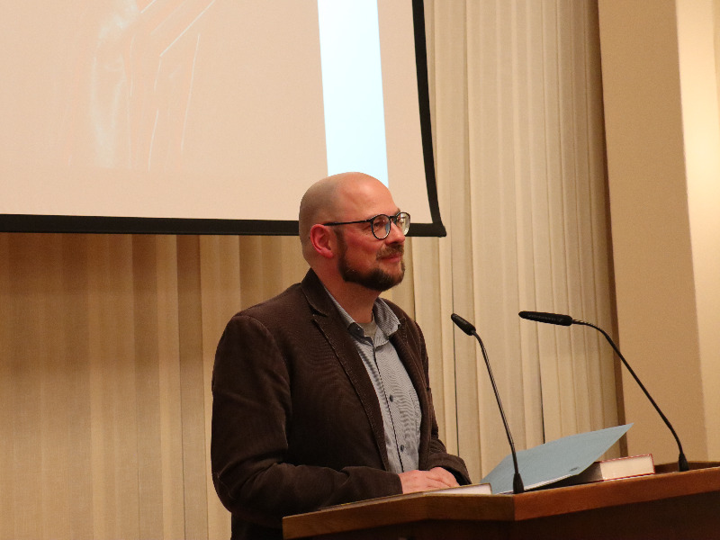 Im Anschluss verlas Dr. Lilian Hohrmann, Kollegin von Dirk Ullmann und Ko-Redaktorin, ein Schreiben des „Doktor-Vaters“ und Mentors Professor Dr. Botho Brachmann, einem Nestor der Archivwissenschaft, dass er anlässlich seiner Einladung zu dieser Veranstaltung verfasste und das mit gutem Gewissen als Laudatio charakterisiert werden kann. Er bezeichnete das Forschungsresultat als verdienstvolle archivgeschichtliche Arbeit, die schon viel eher eine Würdigung hätte erfahren müssen. Den Werdegang des ehemaligen Stadtarchivars skizzierend, hob er auch dessen menschliche Eigenschaften wie Freundlichkeit, Zuverlässigkeit, seine Kollegialität und Ausgeglichenheit hervor. Ähnliche aber auch anders gelagerte Akzente vermittelte ein Schreiben der ehemaligen Seminargruppe. Auch aus diesem Schreiben wurde deutlich, was Matthias Herrmann für ein besonderer Mensch war.