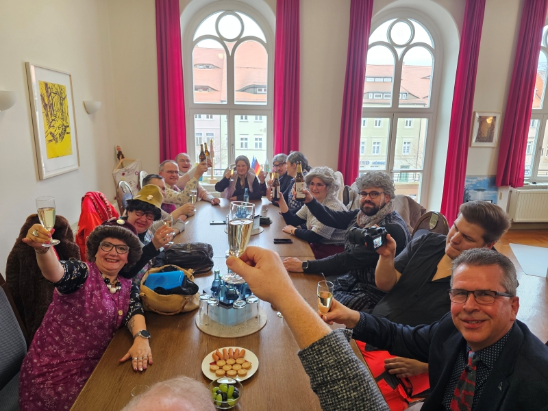 Fast könnte man sagen: Die Bürgermeister kommen und gehen, „Die geilen E's" bleiben und das schon seit 24 Jahren. Und das bewiesen sie mit ihrem heutigen Besuch leibhaftig beim neuen (Wie lange sagt man das eigentlich noch?) Oberbürgermeister. Wie immer waren sie gut drauf, vielleicht auch, weil die KKC-Karnevalsveranstaltung im Stadttheater am letzten Sonnabend so gut besucht war, dass noch zusätzliche Tische und Stühle in den Großen Saal hereingetragen werden mussten. Steht Kamenz eventuell vor eine „Karnevalsepidemie“. Dem KKC wär’s zu wünschen!