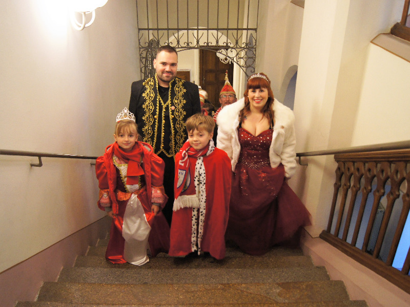 Angeführt vom Prinzenpaar Lisa I. und Patrick I. sowie dem Kinderprinzenpaar Alina I. und Jonas I. kam das KKC-Gefolge doch recht gesittet ins Rathaus. War ja auch einfach, denn alle Türen standen offen für sie. Der Oberbürgermeister und natürlich der Stadtrat hoffen ja gerade auf eine Entmachtung. Mögen doch die Närrinnen und Narren die Haushaltsdebatte weiterführen und die Geschicke der Stadt bestimmen. Aber am Rosenmontag, wenn die Stadtkasse und der Rathausschlüssel wieder zurückgebracht werden, hat man immer wieder das Gefühl, dass sie mit der zeitlichen Machtausübung nicht viel anzufangen wussten und eigentlich froh sind, dass dann der Oberbürgermeister und der Stadtrat wieder die Verantwortung übernehmen.