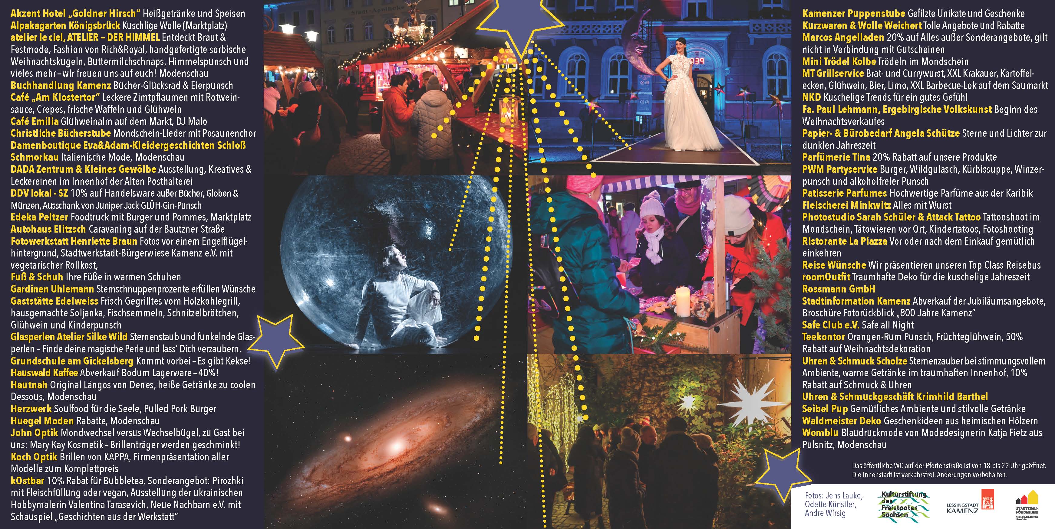 Die Geschäfte rund um den Marktplatz, auf der Bautzner Straße, am Saumarkt und in den Seitenstraßen öffnen wieder bis 22 Uhr ihre Geschäfte und verknüpfen damit natürlich auch ihre Hoffnung auf interessierte und kauffreudige Kundschaft, gerade in der Vorweihnachtszeit. Rabatte, Sonderangebote und unterhaltsames Flair sind deshalb an diesem Abend keine Seltenheit.