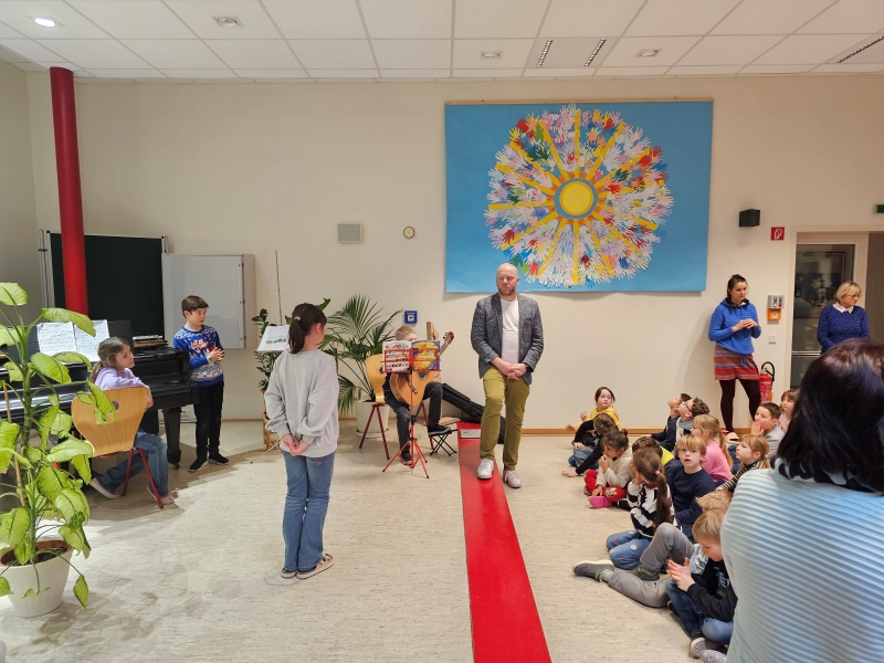 Der Auftakt fand am 3. Februar im Hort an der Grundschule am Forst in Kamenz-Ost statt. An und für sich auf ein Arbeitstreffen mit der Leiterin Anett Kubisch und ihrem Team eingestellt, überraschte die Leiterin den Oberbürgermeister mit einer großen Schar an Hortkindern, die sich in der Aula der Grundschule versammelt hatten und erwartungsvoll dem Besuch des Oberbürgermeisters entgegenfieberten.