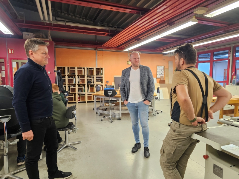 Bild 2 OB Michael Preuß (Mitte) im Gespräch mit Werkstattleiter Stefan Partusch (links) und einem Verantwortlichen für die Berufsildung.