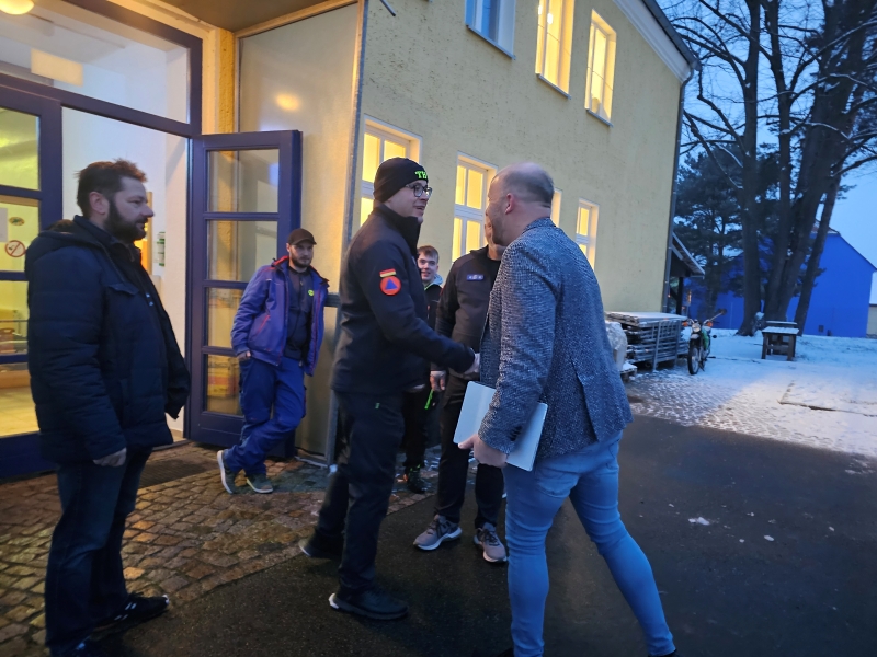 Hier traf sich der Oberbürgermeister mit dem Ortsbeauftragten Ringo Berg und dem Zugführer Enrico Trenn. Im Gespräch erläuterten sie noch einmal den Verantwortungsbereich und die Aufgabenfelder des THW. Beide Vertreter begrüßten das Treffen im Sinne von „In der Krise Köpfe kenne“. Der Ortsverband Kamenz hat ca. 60 Mitglieder und er pflegt ein gutes Verhältnis zu den Kamenzer Ortsfeuerwehren. Aber auch für die Stadtverwaltung direkt wird auf eine gute Zusammenarbeit verwiesen, so z.B. bei bestimmten großen Konzertveranstaltungen auf der Hutbergbühne. Nicht unerwähnt blieb die Unterstützung des THW Kamenz im Festjahr 2025.