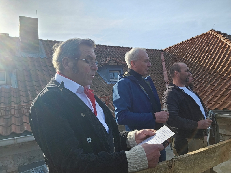 Richtfest bei strahlendem Sonnenschein: Der zweite Meilenstein für die Sanierung und den Umbau des Lessinghauses ist getan
