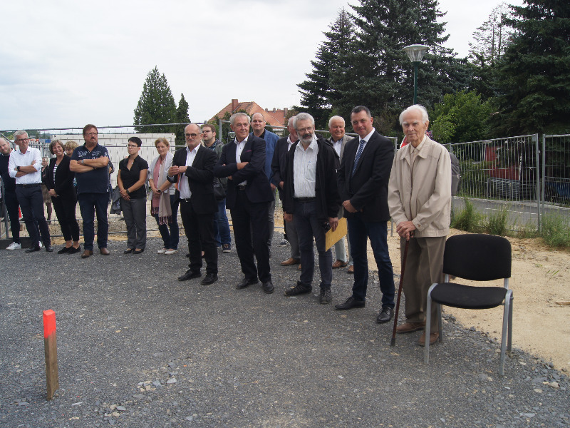 Im Anschluss daran richtete der Geschäftsführer der pdw. Architekten Ingenieure GmbH, Rainer Dittmer, das Wort an die Anwesenden. Er hat sich damals sehr gefreut, dass ein ortsansässiges Architekturbüro den Auftrag für diesen Schulbau erhielt. Es sei auch eine Erinnerung an seine Kindheit bzw. Schulzeit, wo eben neben den Lehrern und Mitschülern, auch und gerade der Ort der Schule, das Schulgebäude in Erinnerung geblieben ist. Und so oft bekommt man als Architekt auch nicht die Chance einen Schulort zu gestalten. Aber gerade die zukünftig vorhandene Kombination aus der feierlichen Stimmung des Altgebäudes mit der Aula, des Modernität ausstrahlenden Erweiterungsneubaus sowie des dazwischen entstehenden Innenhofes machen den besonderen Charme dieses Schulcampus aus. Kurz gesagt, die Schülerinnen und Schüler sollen sich gern an ihre Schulzeit erinnern.